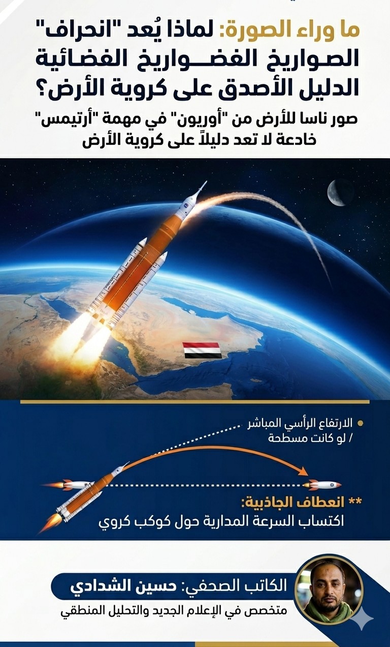 وبينما ينشغل الجميع في “بكسلات” الشاشة، يتجاهلون دليلاً هندسياً يراه كل من يتابع عمليات الإطلاق من فوق سطح الأرض ف لو كانت الأرض مسطحة، لكان أقصر طريق للوصول إلى الفضاء هو الصعود الرأسي المباشر (كسهم ينطلق نحو السماء).